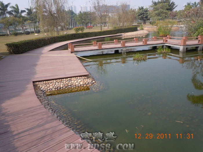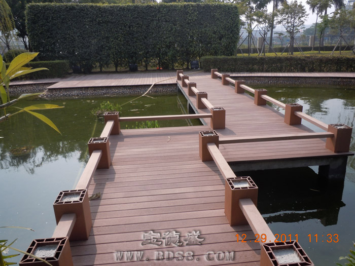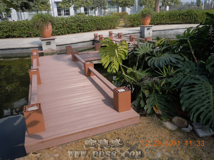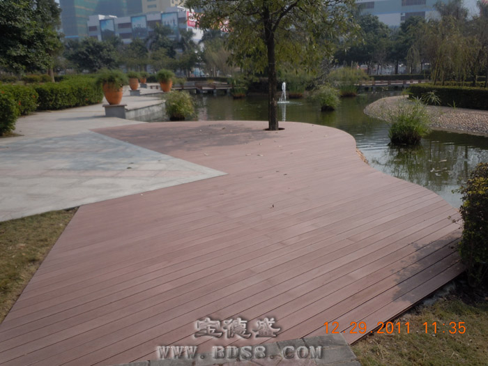 项目地点:深圳龙华好日子烟草公司 所属行业:国营企业 设计单位:*** 完工年份:2011年12月 应用面积:400平方 应用部位:花园水池地板 应用产品:100*25实心地板;60*30专用龙骨扣件 宝德盛塑木地板无毒、无味、不寄生细菌、可循环回收再利用,绿色环保;施工简单,安装快捷,只需用水冲洗或拖把清洁,免打蜡,维护成本低。对于周边经常使用的杀菌剂和化学药品有很强的抵抗性,特别是氯水长时间浸泡后,不变形、不变色,耐腐蚀。表面采用专利凹凸纹理设计,大大提高了防滑性,有效降低意外滑倒摔伤事故的发生率。产品色彩可多变,格调清新,给设计师更多的创意灵感! |
