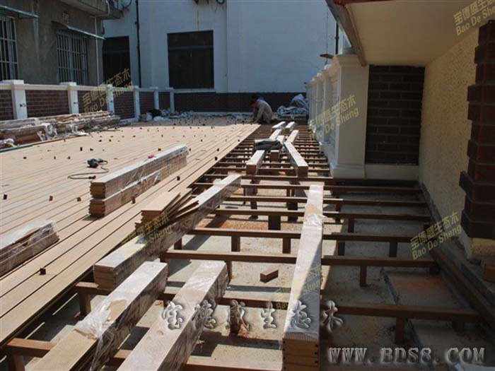 项目地点:深圳宝安所属行业:国营企业 设计单位:*** 完工年份:2010年7月 应用面积:90平方 应用部位:住院部5楼阳台病人康复休息活动平台 应用产品:140*25实心地板;60*30专用龙骨扣件 宝德盛塑木地板无毒、无味、不寄生细菌、可循环回收再利用,绿色环保;施工简单,安装快捷,只需用水冲洗或拖把清洁,免打蜡,维护成本低。对于周边经常使用的杀菌剂和化学药品有很强的抵抗性,特别是氯水长时间浸泡后,不变形、不变色,耐腐蚀。表面采用专利凹凸纹理设计,大大提高了防滑性,有效降低意外滑倒摔伤事故的发生率。产品色彩可多变,格调清新,给设计师更多的创意灵感! |
